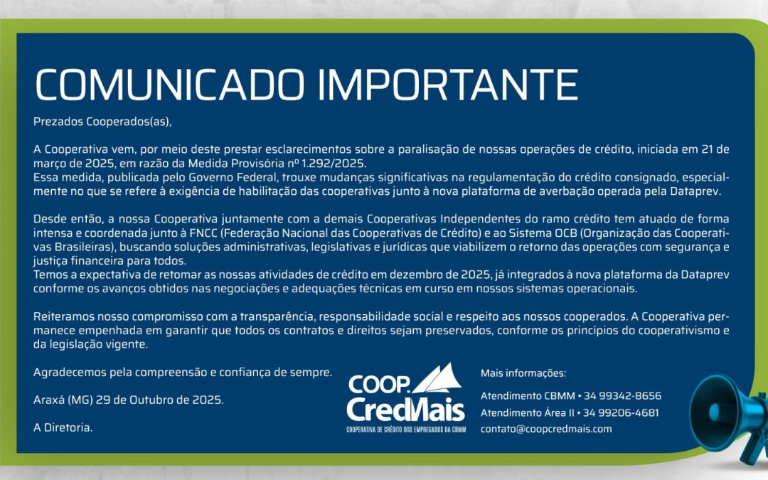 Neste ano de 2025, a retirada das Cestas de Natal pelos nossos Cooperados acontecerá entre os dias 03 a 05 de dezembro, na Av. Tancredo Neves, 30 – bairro Vila Silvéria (Expominas), das 7:30hrs às 18:00hrs. Gestores e facilitadores (CBMM) deverão retirar o “Vale...